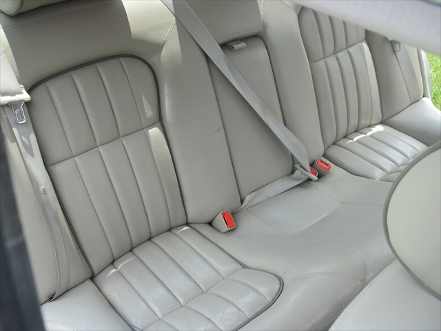 THE REAR OF THE FRONT SEATS ARE AGAIN FULLY LEATHER BOUND AND LIKE THE DAY THAT LEFT THE FACTORY.