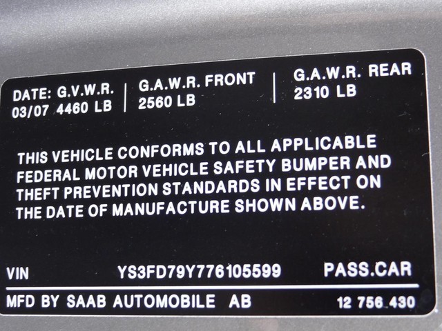 Print this listing NO RESERVE 93 2.0T 2DR COUPE LEATHER HEATED SEATS BLUETOOTH COLD AC EXTRA CLEANBest Car DealsFeel free to contact us with all your questions!Philadelphia, PA 19116Call Us Today(267) 702-5788Ask ForBryanAsk Us A Question Vehicle DetailsYear: 2007Make: SaabModel: 9-3VIN: YS3FD79Y776105599Mileage: 64894Transmission: AutomaticEngine: 4 Cylinder, 2.0 LExterior Color: GrayInterior Color: GrayTitle: Clear Description2.0T CONVERTIBLE TURBO! SPORT!2ND OWNER! ORIGINAL LOW MILES!EXTRA CLEAN! RUNS DRIVES GREAT!FULLY LOADED! LEATHER HEATED SEATS! BLUETOOTH! COLD A/C! DUAL CLIMATE CONTROL! KEYLESS ENTRY! POWER SEAT/WINDOWS/LOCKS/MIRRORS! SPORT STEERING WHEEL! CRUISE CONTROL! TRACTION CONTROL! FRONT AND REAR DISC BRAKES! 4-WHEEL ABS! VEHICLE STABILITY CONTROL! SIDE AIRBAGS! SIDE HEAD CURTAIN AIRBAGS! AND MUCH MUCH MORE!The top is automatic, has no rips or leaks and works just as it should. This is a great previously owned vehicle.There is no current collision damage to this vehicle.The engine on this vehicle is running properly.This vehicle has no known defects.The mileage represented on this vehicle is accurate.This vehicle has a smooth shifting transmission.All power equipment is functioning properly.The exterior of this vehicle is extra clean.The interior is extra clean; it was very well kept. Please make sure you have read and understood our description along with our terms and conditions before placing your bid.If you have any questions about this or any of our other auctions please feel free to contact us via e-mail or you can call us at267-702-5788.If you are thinking of purchasing this vehicle, no need to wait until the end of the auction.Most of the auctions could be ended earlier with a reasonable offer. So do not wait till last minute.Just call (267) 702-5788 TO MAKE A DEAL!Thank you for your interest and we look forward to hearing from you. Features & Options 4-Wheel Disc Brakes AM/FM Stereo Adjustable Steering Wheel Air Bag Air conditioning Alloy Wheels Anti-Skid Control Anti-lock brakes Automatic Transmission CD player Center Arm Rest Compass/Temp. Gauge Convertible Cruise control Cup Holders Digital Clock Driver airbag Floor Mats Front Bucket Seats Front-Wheel Drive Head Protection System (Airbags) Heated Seats Interior Hood Release Interval Wipers Keyless Entry Leather Steering Wheel Leather Upholstery Leather seats Map Light Panic Button Passenger Climate Control Passenger airbag Power Driver's Seat Power Lumbar Support Power Mirrors Power Steering Power Trunk Power locks Power windows Rear Air Conditioning Rear Defroster Remote Trunk Lid Security System Side airbags Sport Steering Wheel Steering Wheel Controls Tachometer Third Brake Light Tilt Steering Column Traction Control Trip Odometer Turbo charged Vanity Mirror(s) Additional Photos Warranty Information This vehicle is being sold as is, where is with no warranty, expressed written or implied. The seller shall not be responsible for the correct description, authenticity, genuineness, or defects herein, and makes no warranty in connection therewith. No allowance or set aside will be made on account of any incorrectness, imperfection, defect or damage. Any descriptions or representations are for identification purposes only and are not to be construed as a warranty of any type. It is the responsibility of the buyer to have thoroughly inspected the vehicle, and to have satisfied himself or herself as to the condition and value and to bid based upon that judgement solely. The seller shall and will make every reasonable effort to disclose any known defects associated with this vehicle at the buyer's request prior to the close of sale. Seller assumes no responsibility for any repairs regardless of any oral statements about the vehicle. We've taken the responsibility to provide you with all information we have available regarding this vehicle. However, not all information regarding this vehicle has been obtained and therefore it is advisable to have and independent mechanic review this vehicle and obtain a vehicle history from CarFax. This vehicle is sold "as is" and "where is" without any express or implied warranties, INCLUDING BUT NOT LIMITED TO THE IMPLIED WARRANTIES OF MERCHANTABILITY, FITNESS FOR A PARTICULAR PURPOSE OR NON-INFRINGEMENT. IN NO EVENT SHALL WE BE LIABLE FOR ANY SPECIAL, INDIRECT, PUNITIVE OR CONSEQUENTIAL DAMAGES RESULTING FROM ANY USE OR PERFORMANCE OF OR CONTENT ERRORS OR OMMISIONS OF INFORMATION. The purchaser will bear entire expense of repairing or correcting any defects that may presently exist or that may occur in the vehicle. We neither assume nor authorize any other person to assume for it any liability in connection with the sale of this vehicle. Terms & Conditions SHIPPING IS SOLELY BUYER'S RESPONSIBILITY, BUT WE CAN HELP YOU TO MAKE ARRANGEMENTS. PLEASE EMAIL US YOUR ZIP-CODE TO GET SHIPPING QUOTES. All vehicles are sold AS-IS WHERE-IS with NO WARRANTY written nor implied. It is solely buyer's responsibility to satisfy himself as to the condition of the vehicle PRIOR to bidding. You are more than welcome to inspect a vehicle in person or if you are unable to do so, you can arrange a third party inspection by using eBay service or any other certified mechanics at your choice. No inspection will be made after you won the auction.All test-drives and inspections are welcome!Please call us to arrange a test-drive or inspection BEFORE the auction ends. ALL SALES ARE FINAL and the winner of the auction is required by eBay to pay in full by placing his bid. We require payment within 3 business days and vehicle to be picked up in timely manner. Buyer is required to contact us within first 24 hours and leave us name and contact phone number.ATTENTION BIDDERS! If you're planning on bidding on multiple items at one time you MUST get pre-approved! Send us your FULL NAME and CONTACT NUMBER or call us. Otherwise, your bids will be cancelled and you'll be blocked from bidding on our items. NO EXCEPTION