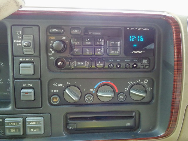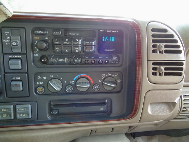 | 4 X 4 4-Wheel Disc Brakes 60/40 Split-Fold Rear Seat AM/FM Stereo Adjustable Steering Wheel Air Bag Air conditioning Alloy Wheels Anti-lock brakes Automatic Transmission CD player Cassette player Center Arm Rest Child-Proof Door Locks Chrome Wheels Compass/Temp. Gauge Cruise control Cup Holders Digital Clock Driver airbag Fog Lamps Front Bucket Seats Heated Seats HomeLink Interior Hood Release Interval Wipers Leather Steering Wheel | Leather Upholstery Leather seats Luggage Rack Map Light Multi Disc CD changer OnStar Passenger airbag Power Lumbar Support Power Mirrors Power Steering Power locks Power seats Power windows Rear Air Conditioning Rear Defroster Rear Window Wiper Rear seat fold-down armrest Receiver Tow Running Boards Tachometer Third Brake Light Tilt Steering Column Tinted Glass Towing Package Trip Odometer V-Style Engine Vanity Mirror(s) |